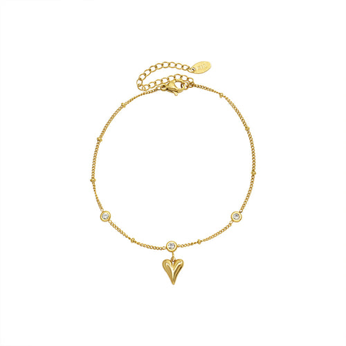 8K Gold Zircon Heart Anklet Ornament Cn0296